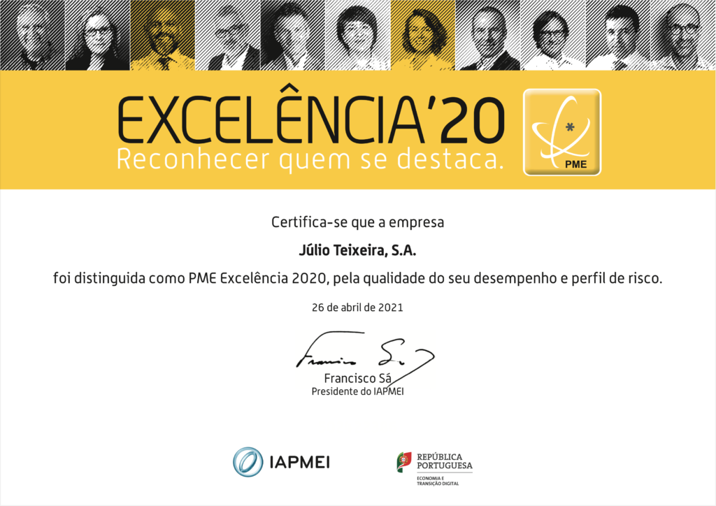 [:pt]Júlio Teixeira distinguida com o estatuto PME Excelência 2020.[:en]