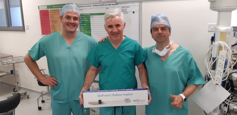 DR PAULO S. COSTA NA EQUIPA QUE REALIZOU OS PRIMEIROS IMPLANTES “BIOPROTECT BALLOON” NO NUFFIELD CARDIFF AND VALE HOSPITAL, EM CARDIFF, PAÍS DE GALES